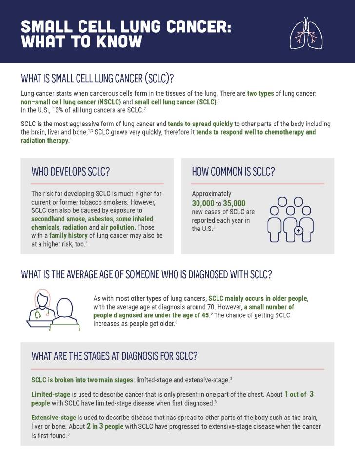 Learning the basic facts about small cell lung cancer (SCLC) can help guide you through care from the time of diagnosis through treatment through remission. Download this fact sheet, which includes essentials as you begin your journey.
