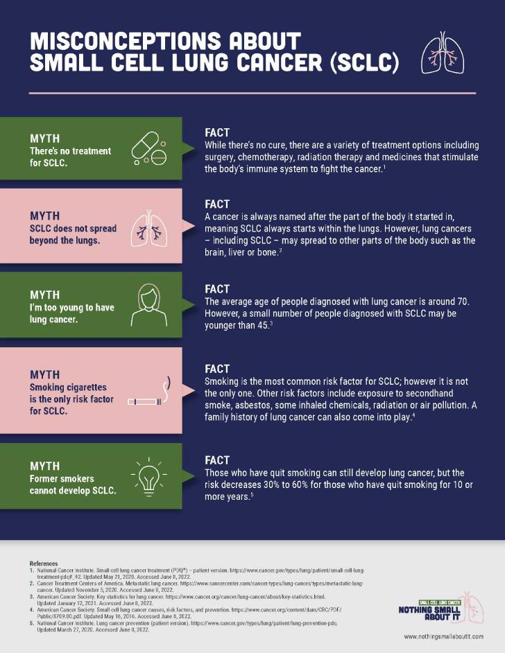 It’s important to stick with what science tells us in order to avoid false or inaccurate information. View our Misconceptions About SCLC infographic to learn more.